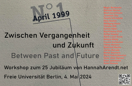 Am 4. Mai 2024 fand an der Freien Universität Berlin ein Workshop statt, in dem wir das 25. Jubiläum von HannahArendt.net gefeiert haben. Die Veranstaltung mit dem Titel Zwischen Vergangenheit und Zukunft/Between Past and Future war eine hervorragende Gelegenheit, die langjährigen Freundinnen und Freunde unserer Zeitschrift sowie viele Kolleginnen und Kollegen, die an der aktuellen Arendt Forschung und der Austausch dazu interessiert sind. Wie es für eine Geburtstagsparty gehört, gab es nicht nur ernste Überlegungen und Tiefgründige Gespräche: wir haben auch, etwas konservativ, mit Kaffee und Keksen gefeiert und, ganz im Arendts Sinne, sehr viel und herzlich gelacht. Einen Bericht von dieser Veranstaltung finden Sie in dieser Aufgabe.